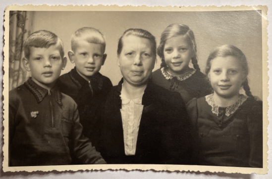 In November 1943 he was conscripted. Dora and the four children rush to the photographer, to get a photo for him as a reminder of the family. See below: